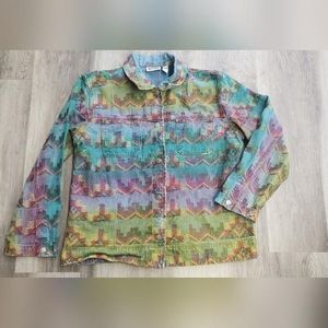 Vintage Chico s Design lightweight embroidered denim jacket Very well made.