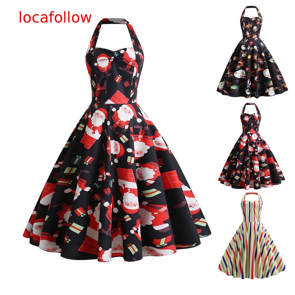 Locafollow Christmas Vintage Party Dresses Women Printed Very well made.