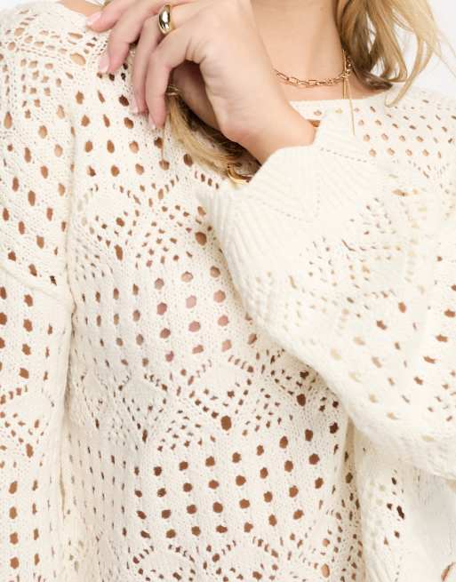 Miss Selfridge crochet long sleeve sweater in cream Very well made.