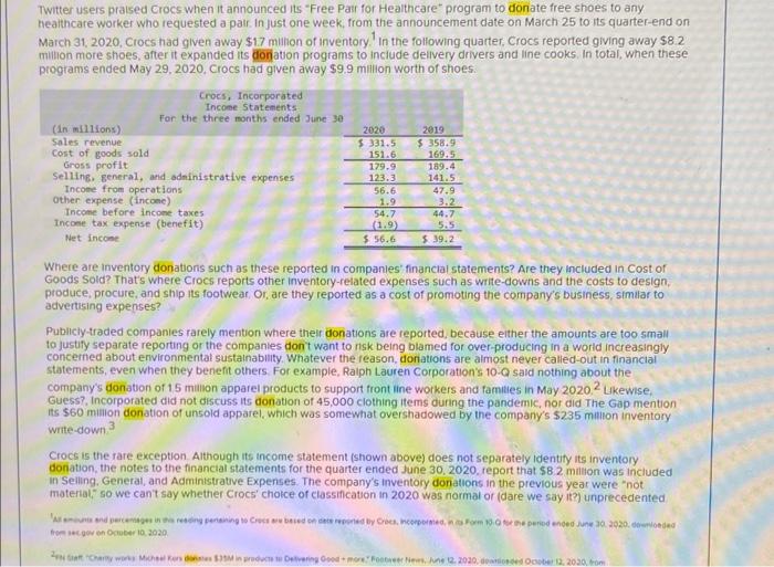 Solved Twitter users praised Crocs when it announced its Chegg Very well made.