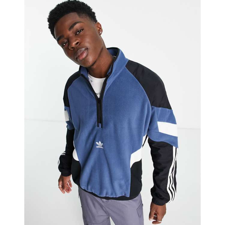 adidas Originals Rekive 1 4 zip fleece in black and blue Very well made.
