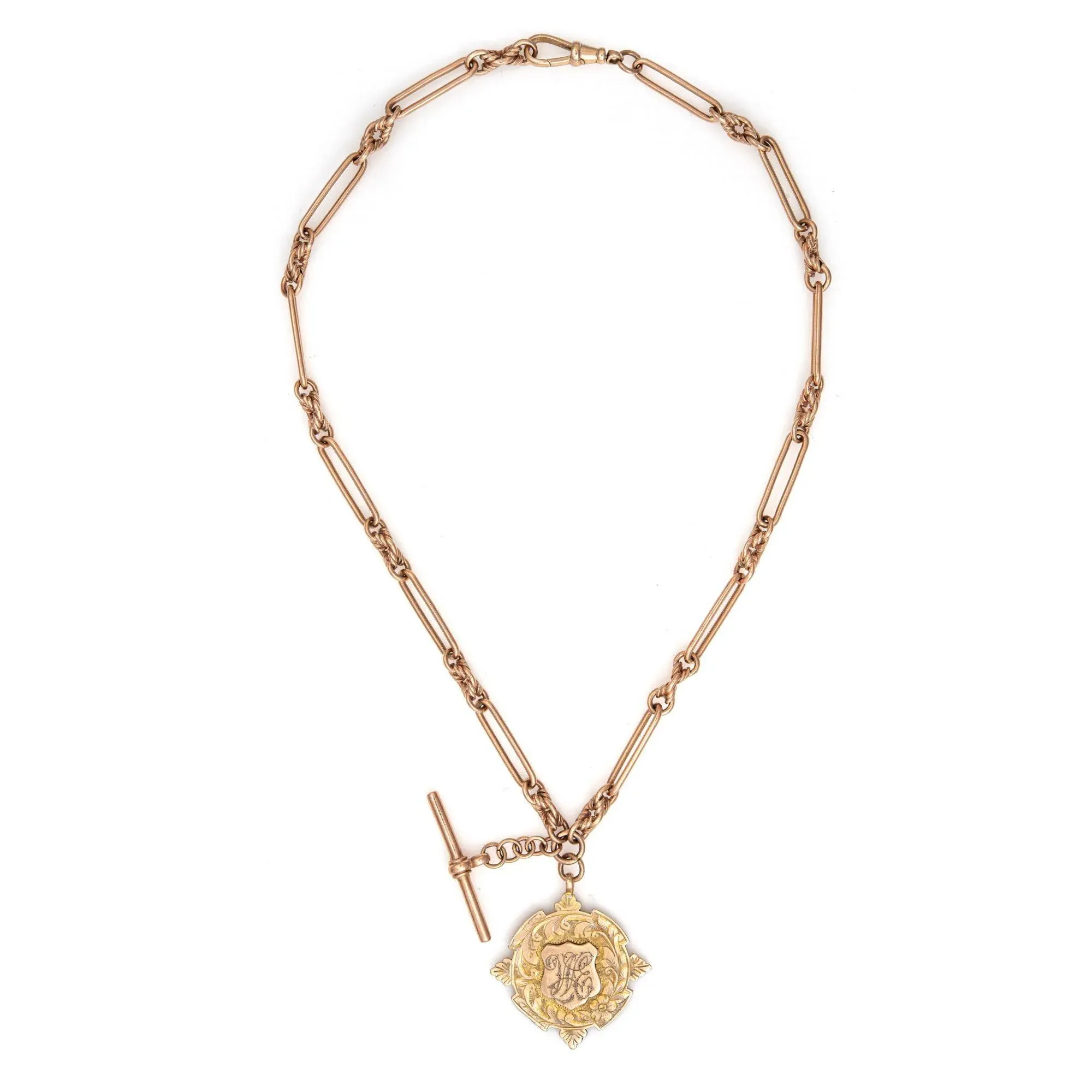 Antique Victorian 9k rose gold Fob chain Circa 1890 1900 For Sale Very well made.