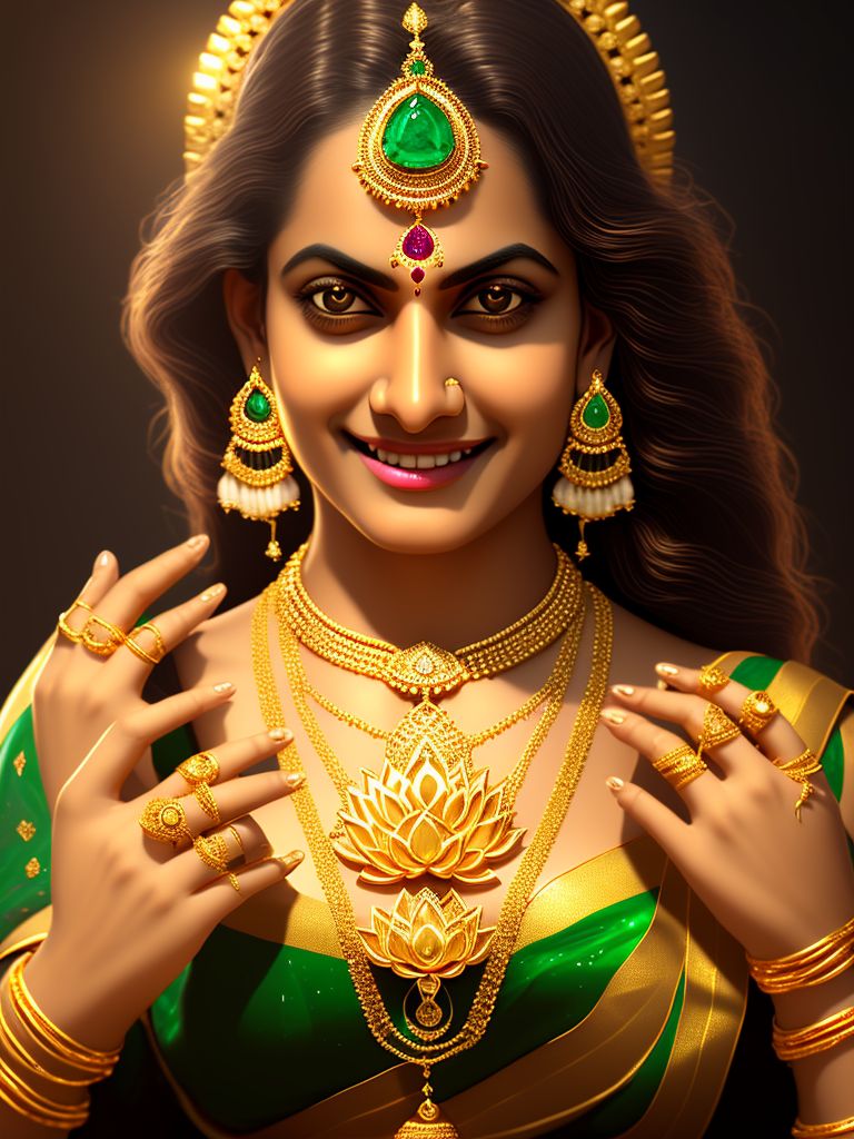 firm grouse596 Goddess laxmi lots of gold jewelry lotus Very well made.