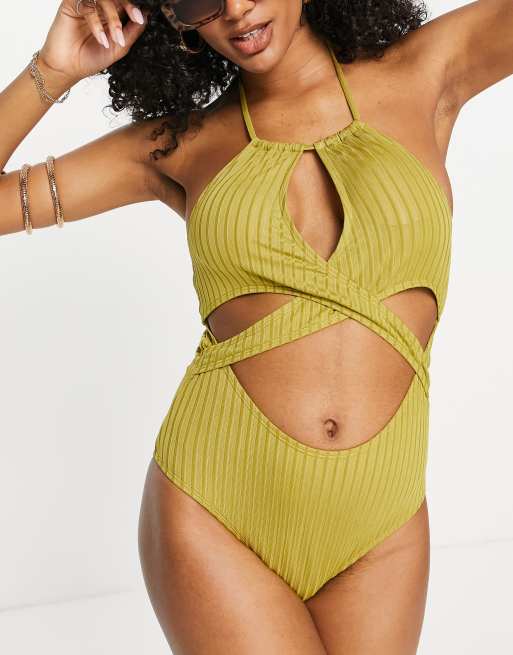 Love Other Things cross cut out halter swimsuit in green ASOS Very well made.