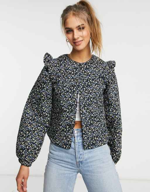 Vila jacket with frill shoulder detail and balloon sleeve in ditsy floral Very well made.