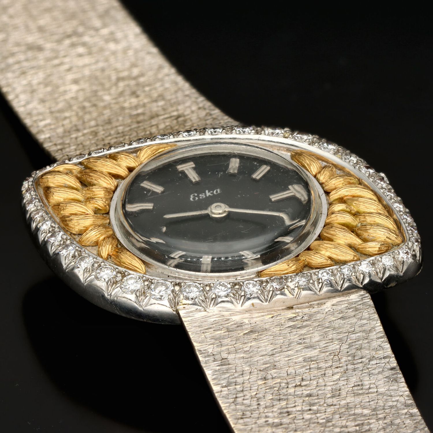 Eska Unisex 18k White Gold and Diamond Watch Watches Hemswell Very well made.
