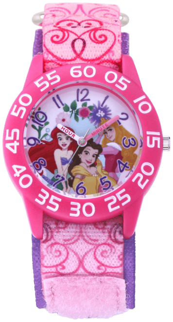 Disney Princess Belle Ariel Aurora Kids Pink Time Teacher Watch Very well made.