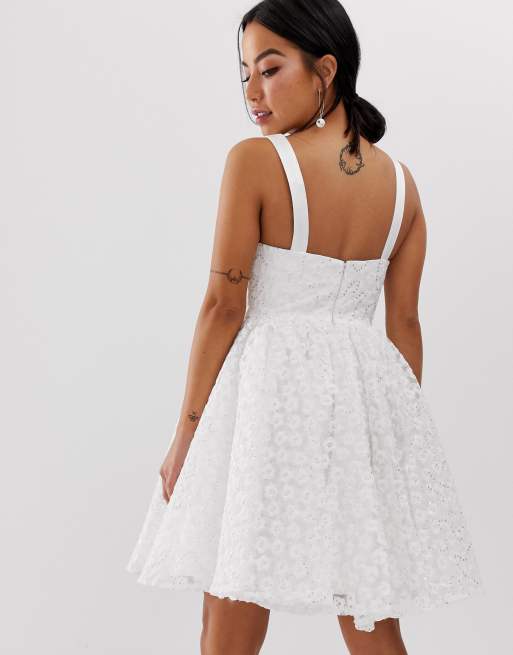 Dolly Delicious Petite square neck textured mini prom dress in white Very well made.