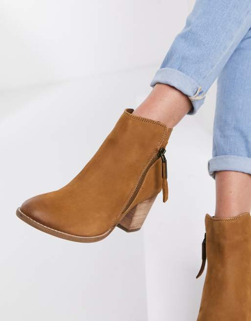 Dune London side zip western heeled ankle boots in tan suede Very well made.