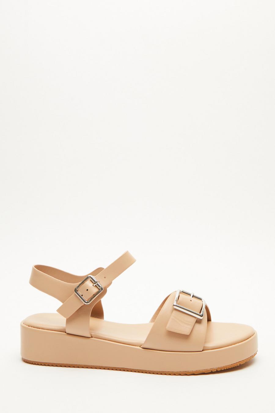 Nude Faux Leather Buckle Flatform Sandal Quiz Clothing Very well made.