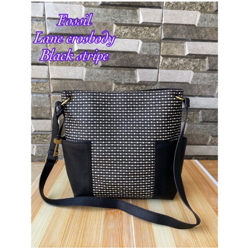 Fossil Lane North South Crossbody Black Stripe Barang Mewah Tas Very well made.