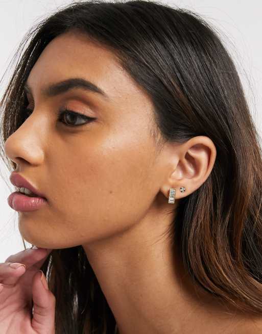 House of Freedom at Topshop pave hoop huggy hoop earrings in gold plated Very well made.