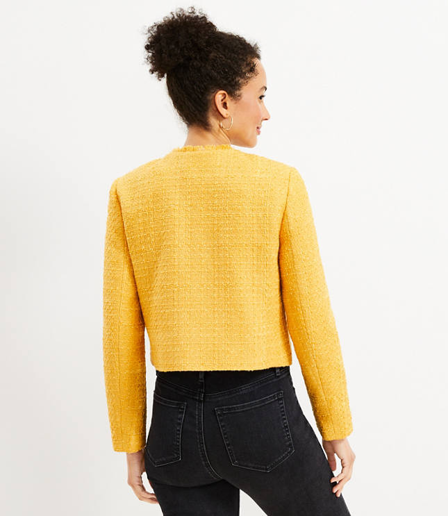 Fringe Trim Contrast Sleeve Recycled Knit Tweed Jacket Very well made.
