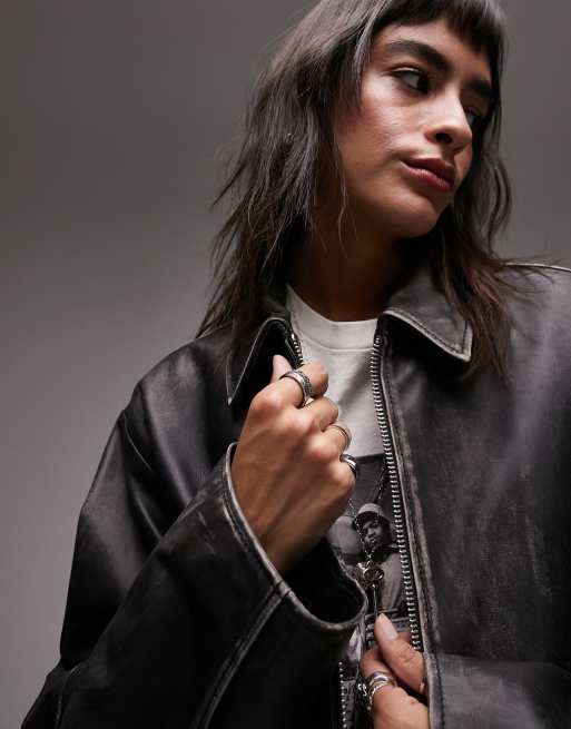 Topshop Giacca anni 90 in vera pelle nero slavato con tasche e zip Very well made.