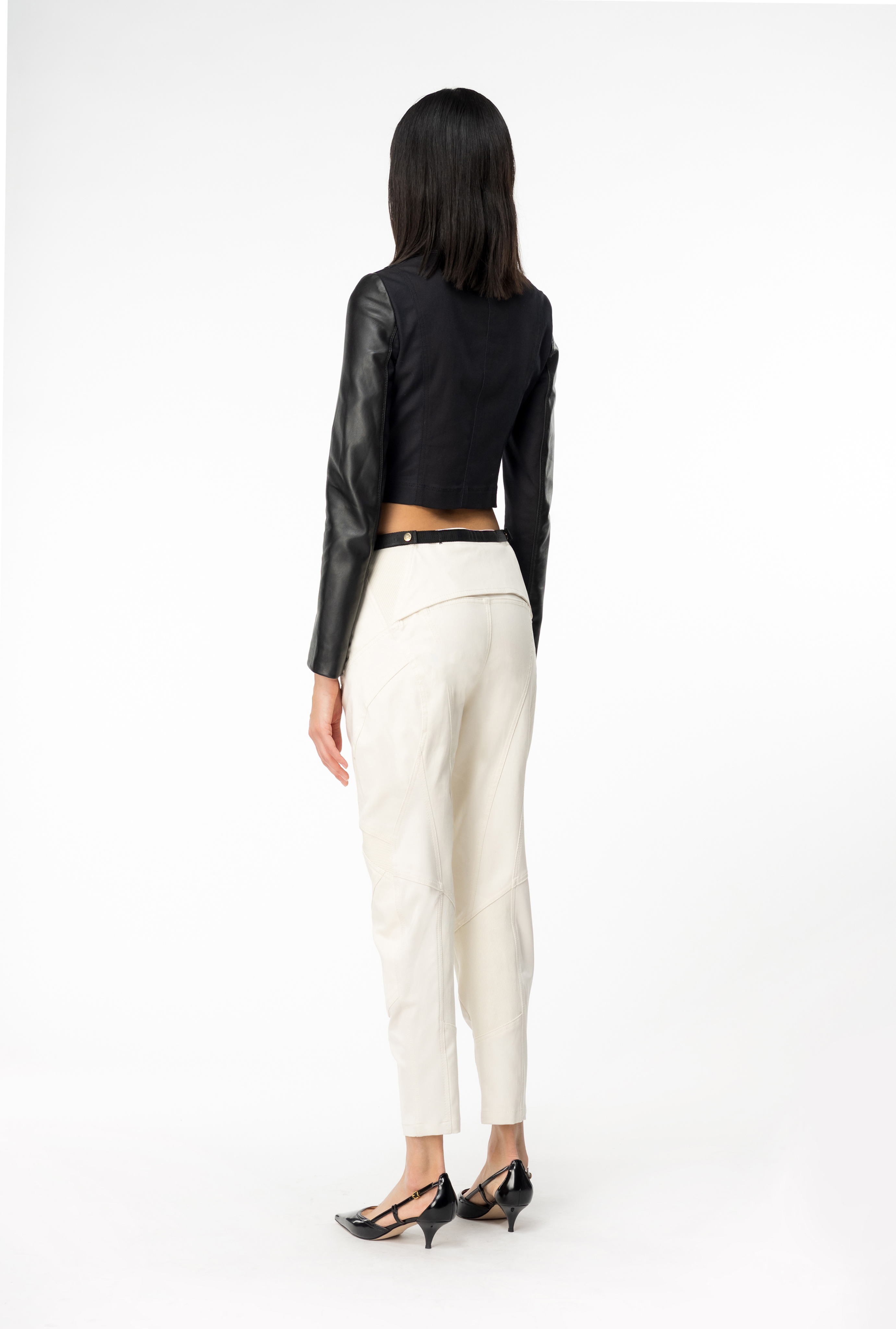 Giacca biker corta in pelle e tessuto Pinko Acquista Online Very well made.
