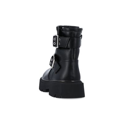Girls black buckle chunky biker boots Very well made.