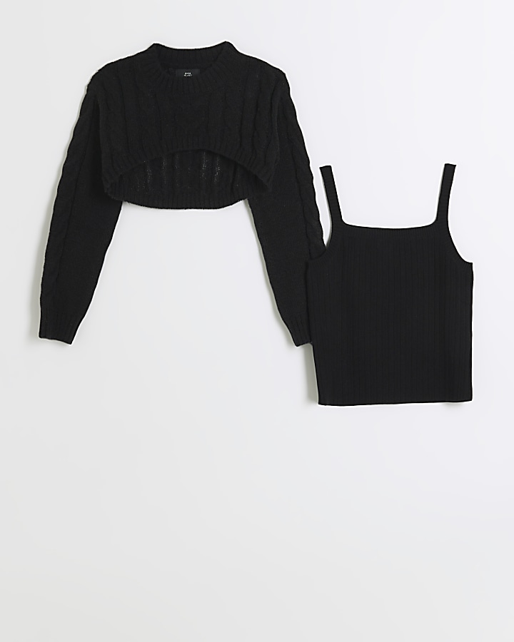 Girls black knitted crop jumper and vest set Very well made.