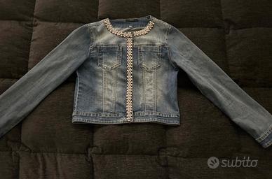 Giacca denim blue jeans giacchetta jacket cappotto con perline bottoni Taglia S Colore Blu jeans Very well made.