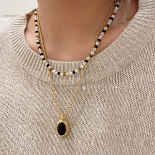 Black Onyx Stone Beaded Pendant Chain Necklace Waterproof Non Very well made.