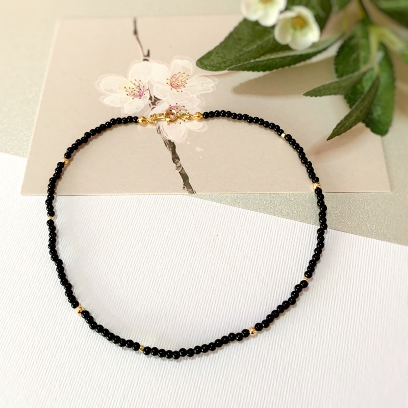SG Seller Handmade black with gold beads choker or necklace Very well made.