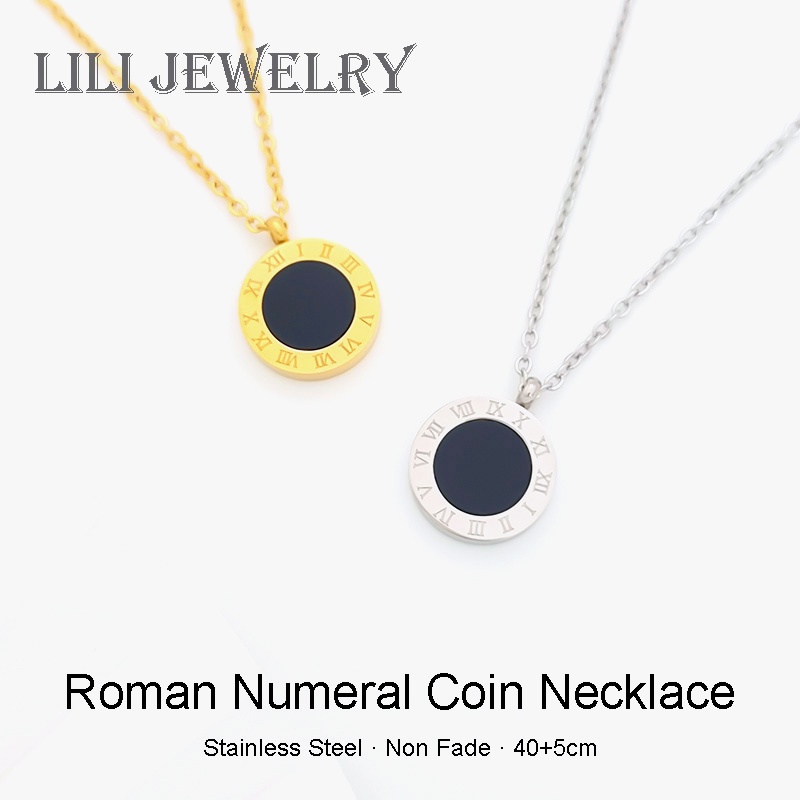 LiLi Roman Numerals Round Coin Necklace For Women Black White Very well made.