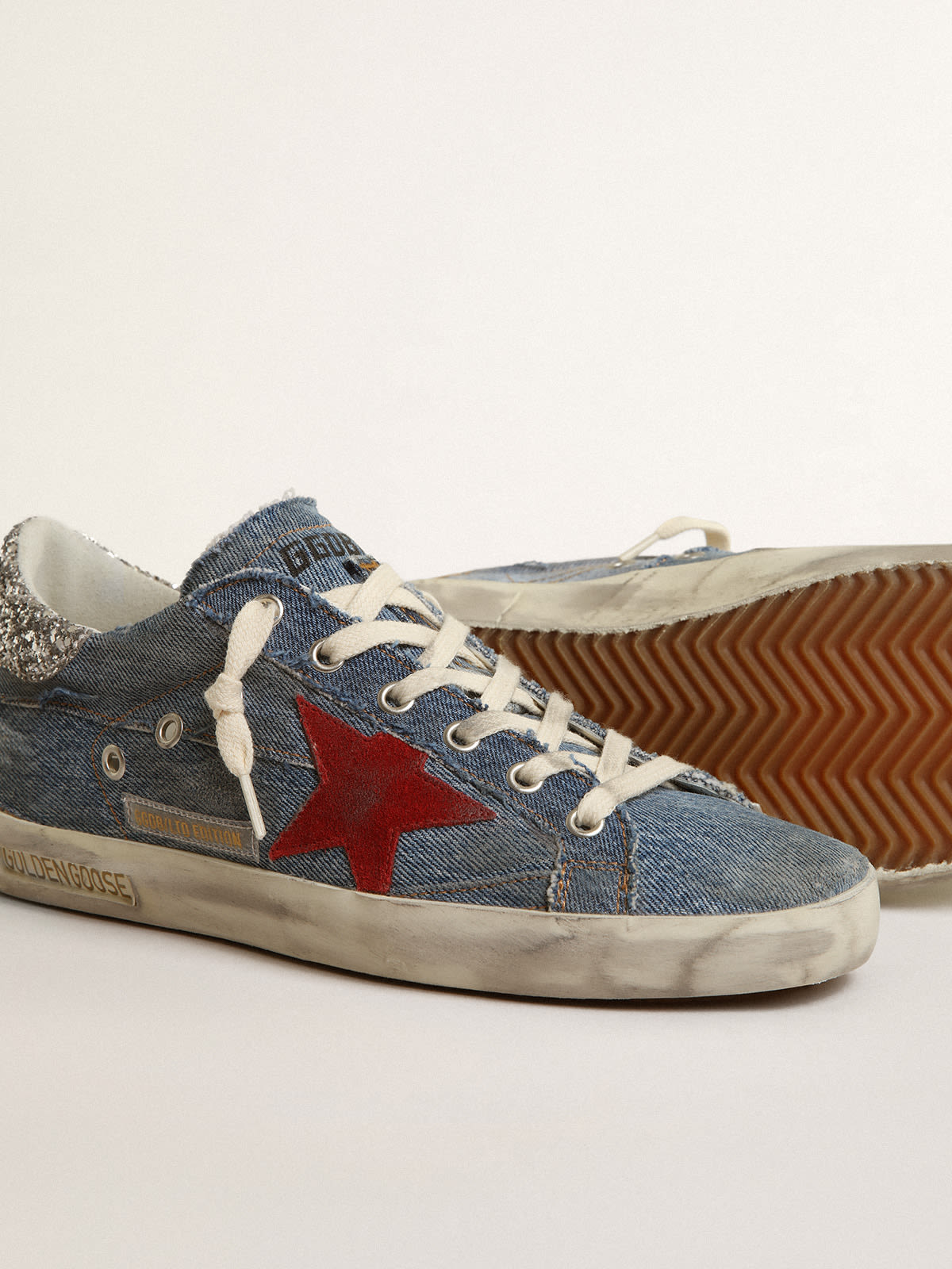 Women s Super Star LTD in denim with glitter heel tab Very well made.