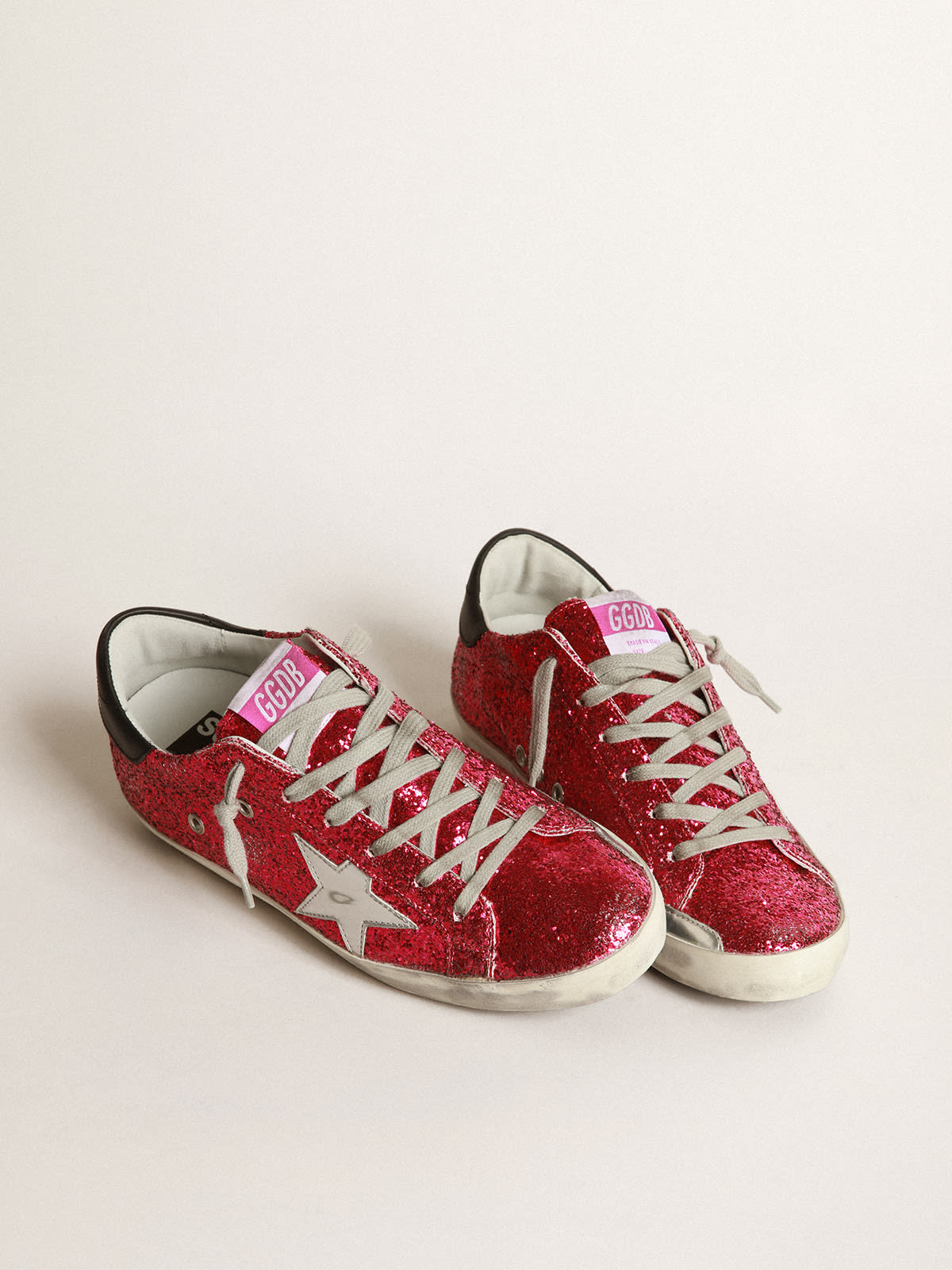 Super Star sneakers in fuchsia glitter with silver laminated leather star Very well made.