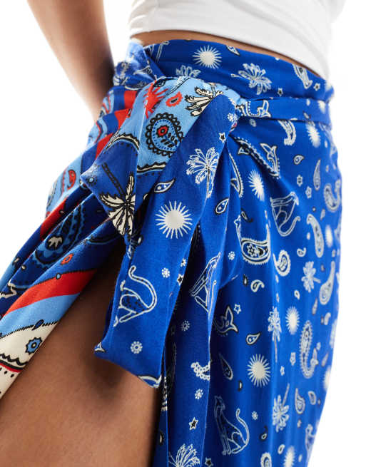Never Fully Dressed Jaspre Gonna al polpaccio a portafoglio blu con stampa stile bandana in coordinato Very well made.