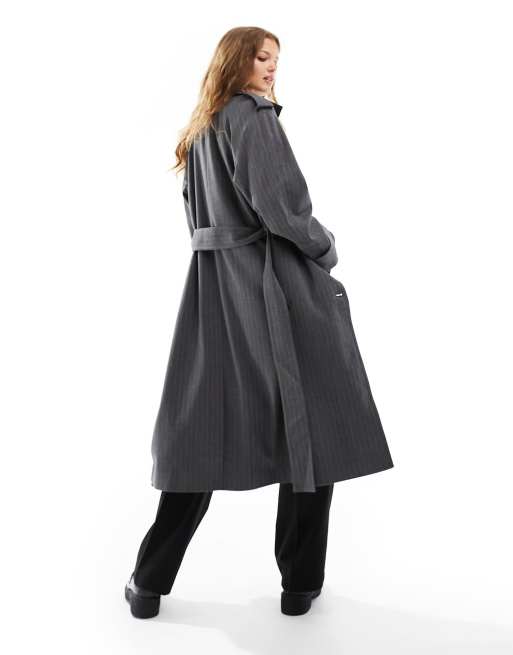 ASOS DESIGN Petite oversized pinstripe trench coat in grey ASOS Very well made.