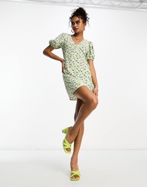 Glamorous short sleeve wrap mini dress in green retro floral Very well made.