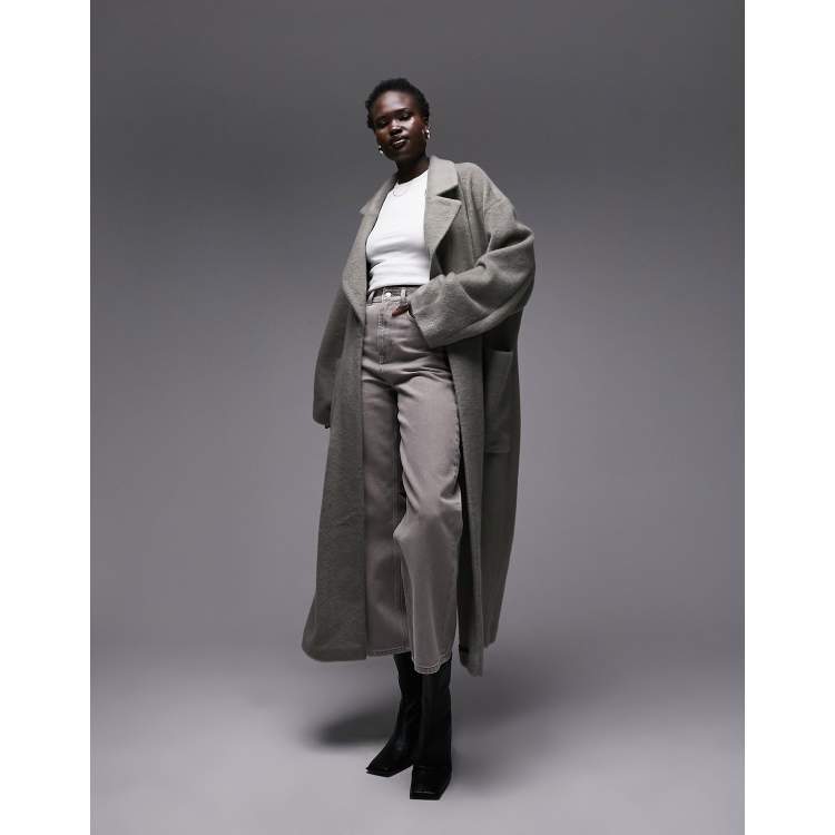 Topshop Tall brushed chuck on coat with patch pockets in moss green Very well made.