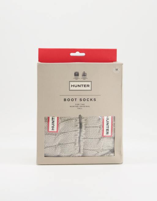 Hunter 6 stitch knit cable tall boot socks in greige Very well made.