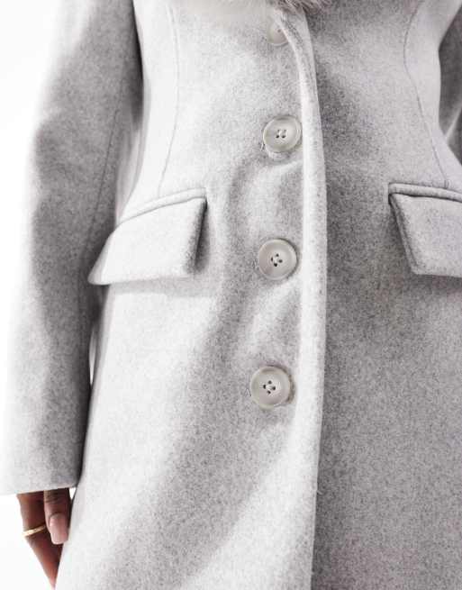 River Island tailored coat with faux fur collar in light grey Very well made.