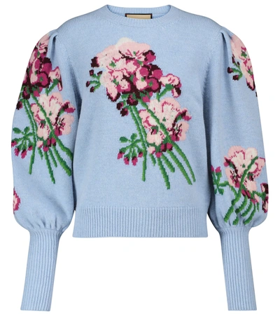 Gucci Floral embroidered crew neck cotton blend jumper in pink Very well made.
