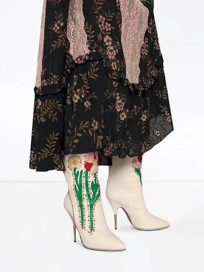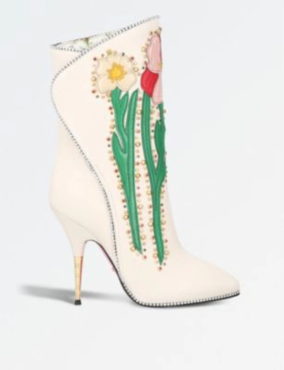 Gucci Fosca Appliqu d Embellished Textured leather Ankle Boots In Very well made.