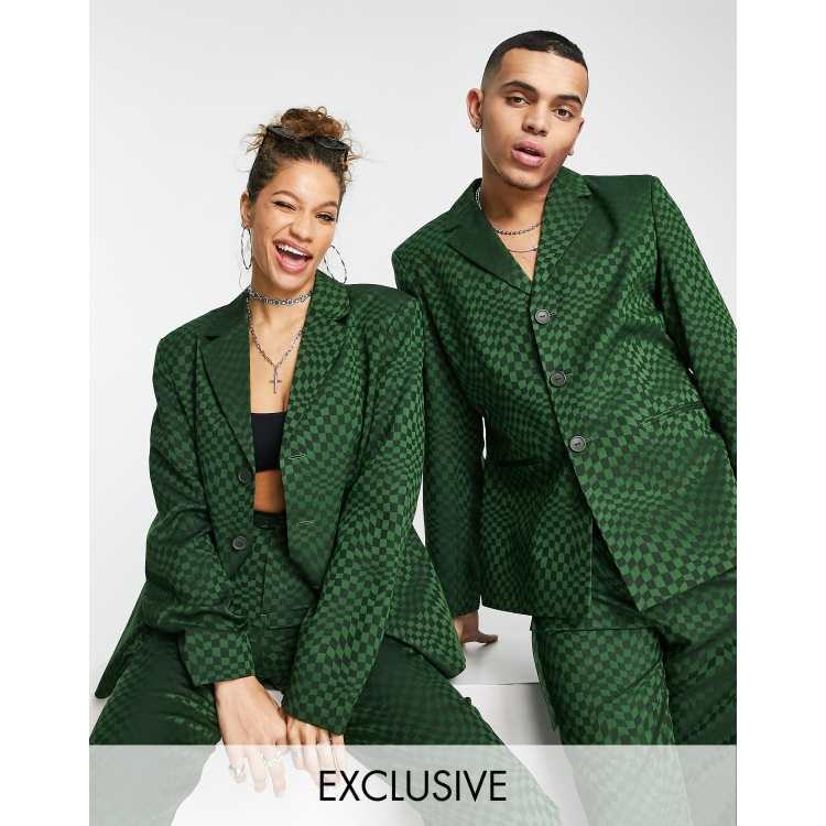 COLLUSION Unisex oversized blazer in warped checkerboard print Very well made.