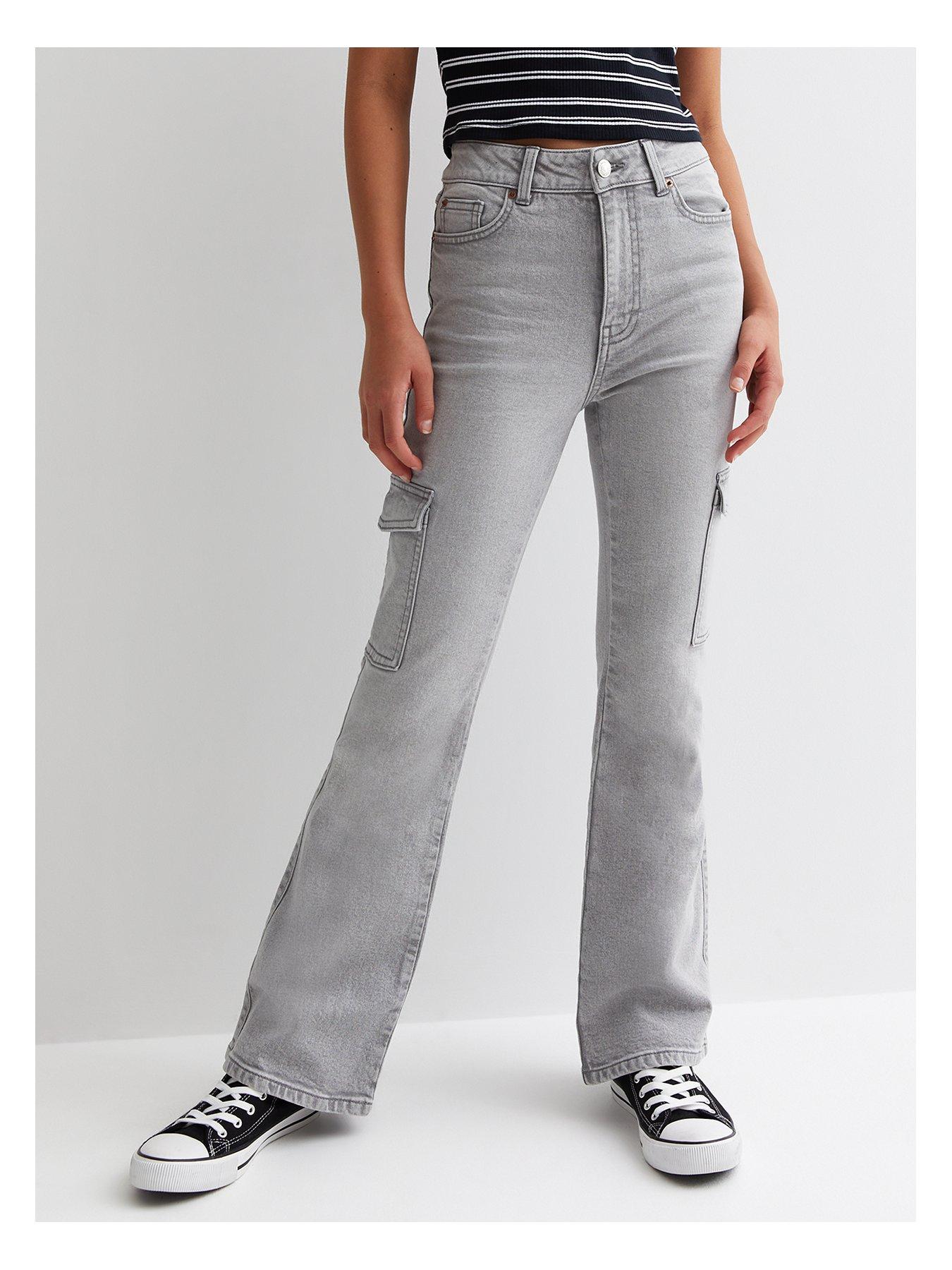New Look 915 Girls Grey High Waist Flared Cargo Jeans very Very well made.