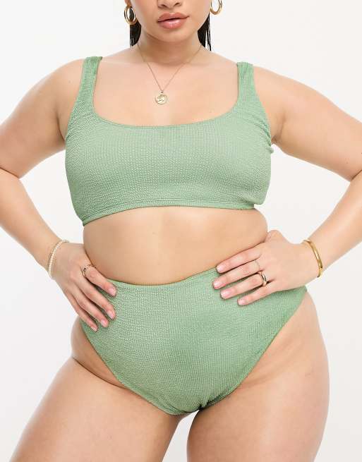 ASOS DESIGN Curve mix and match crinkle high leg high waist bikini bottom in khaki Very well made.