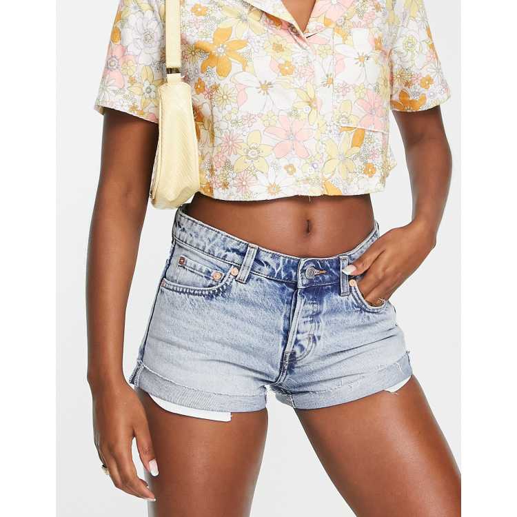 Weekday fire cotton blend low rise denim shorts in spring blue Very well made.