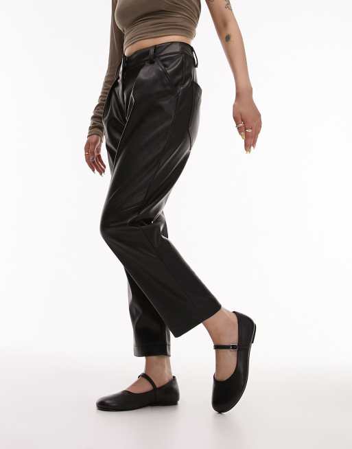 Topshop Petite faux leather high waist pleated peg trouser in black Very well made.