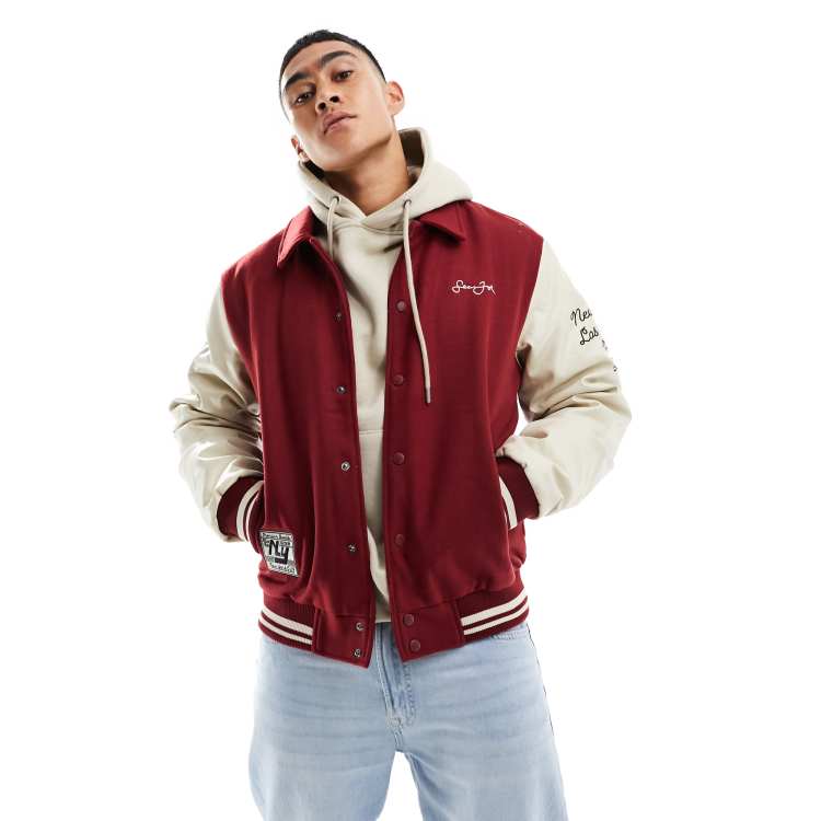 Sean John script varsity bomber jacket in red and off white with retro Very well made.