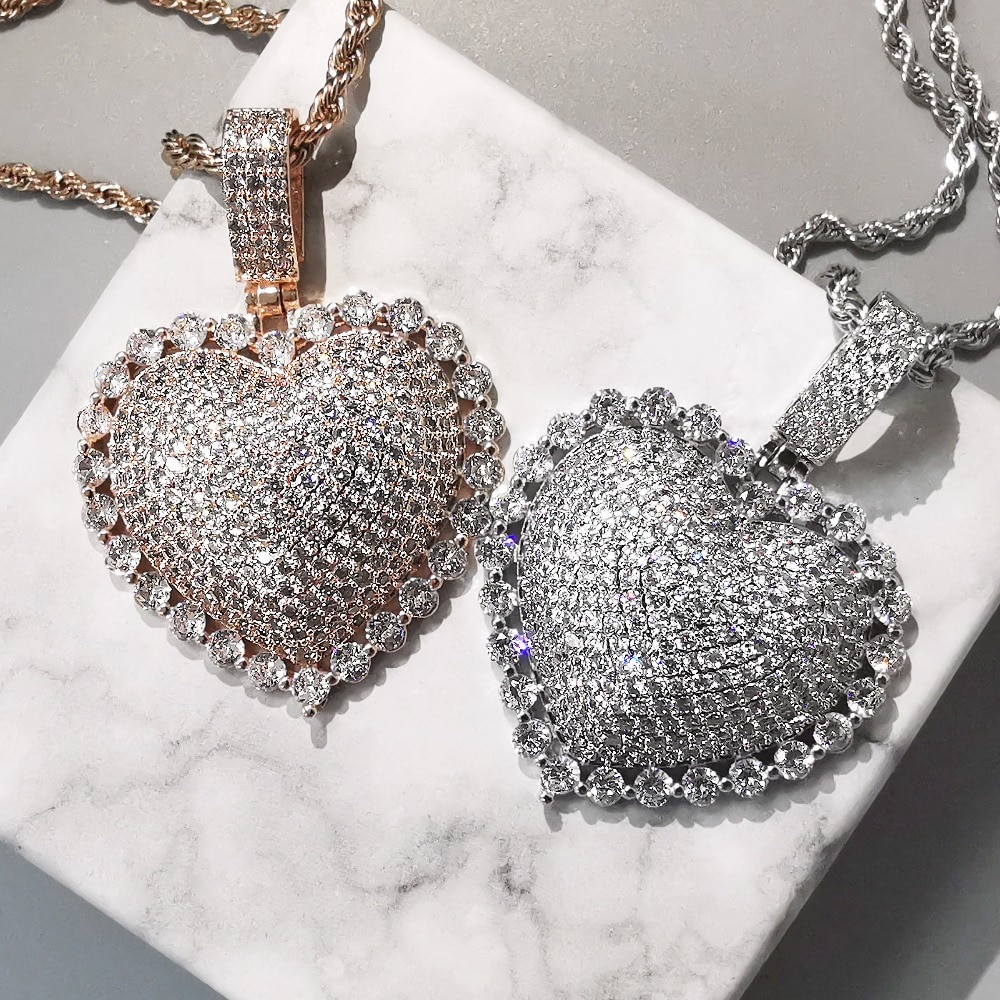 Iced Love Heart Pendant Necklace Photo Frame Accessories Men Temu Very well made.