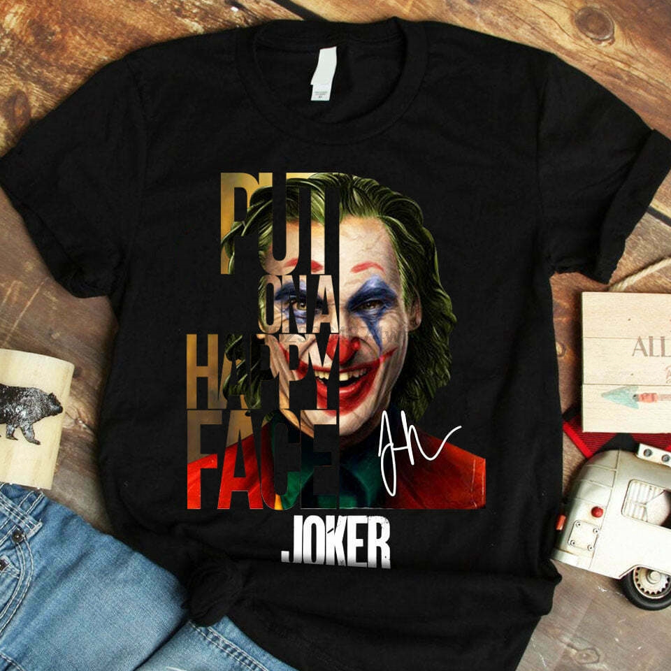 2021 Joker put on a happy face on Halloween Black T shirt Joaquin Very well made.