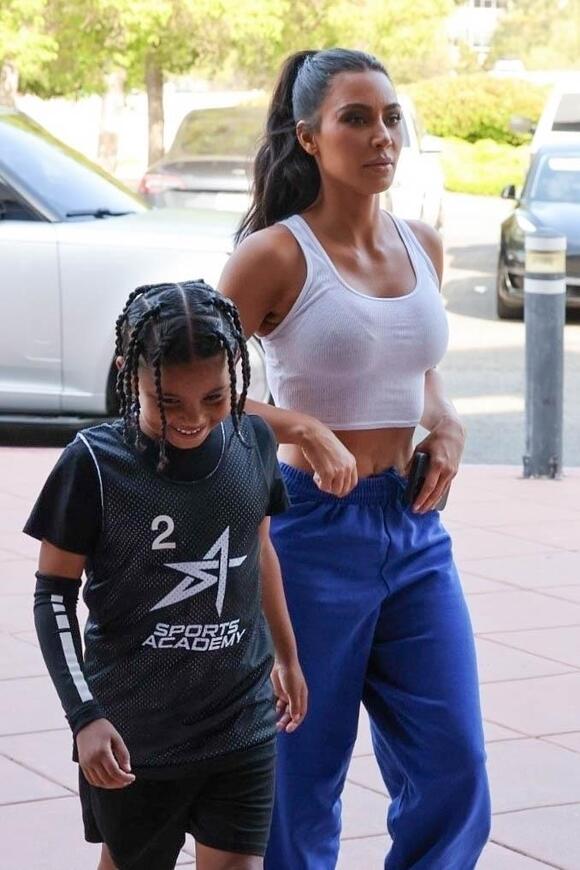 Kim Kardashian s tiny waist drowns in baggy pants and crop top as Very well made.