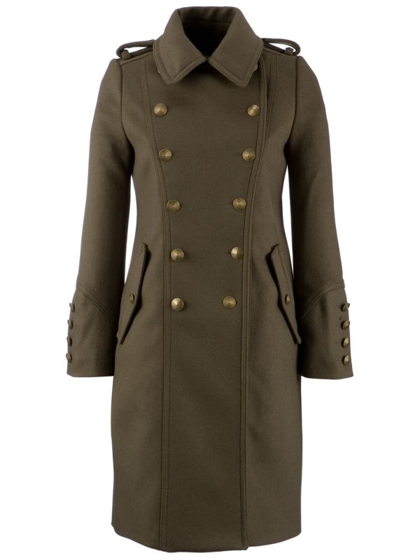 STRUCTURED MILITARY KHAKI COAT WITH SHEARLING COLLAR AND SHOULDER Very well made.