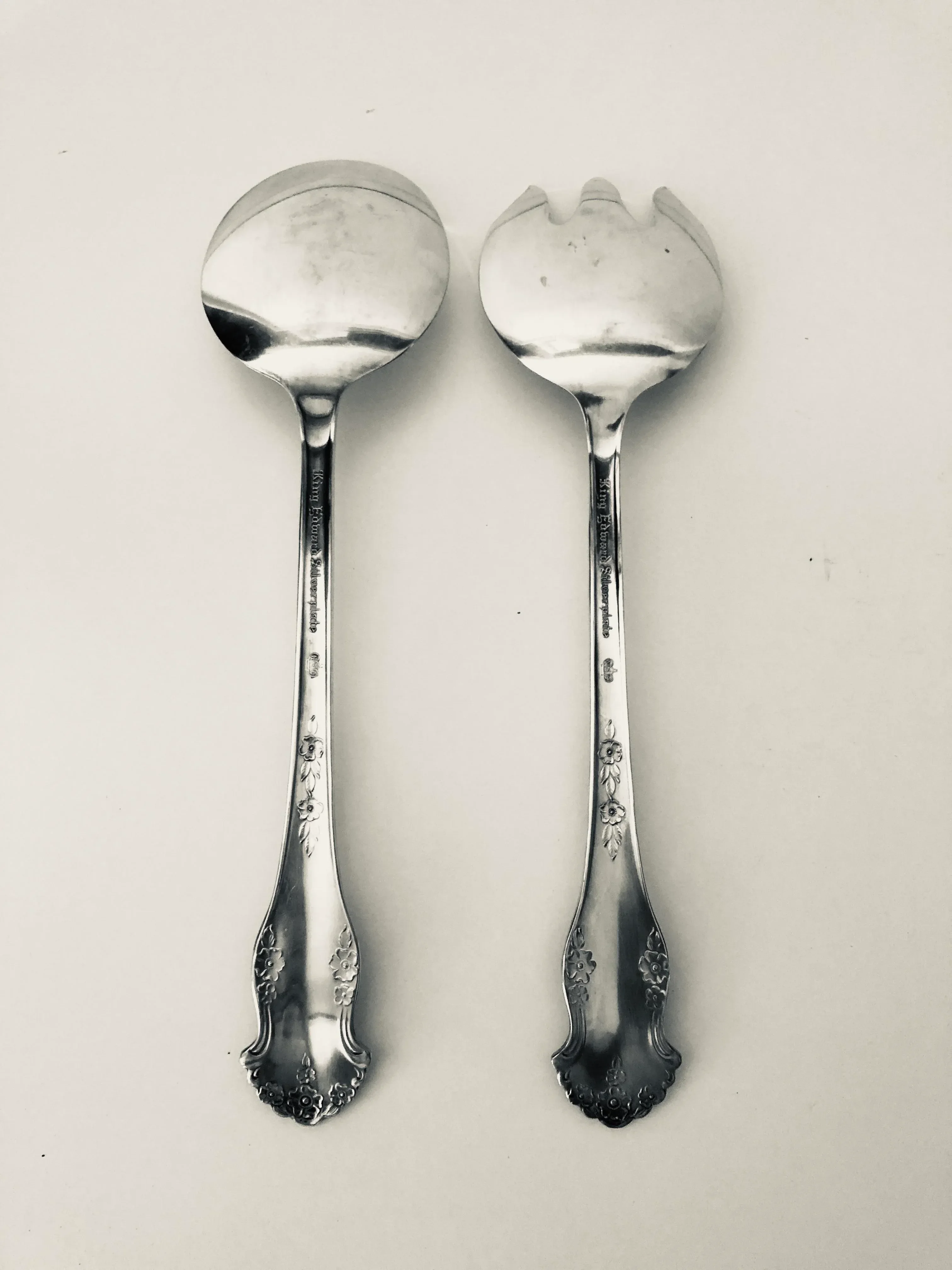 1990 s King Edward Silverplate Floral Design Serving Utensils Set Very well made.