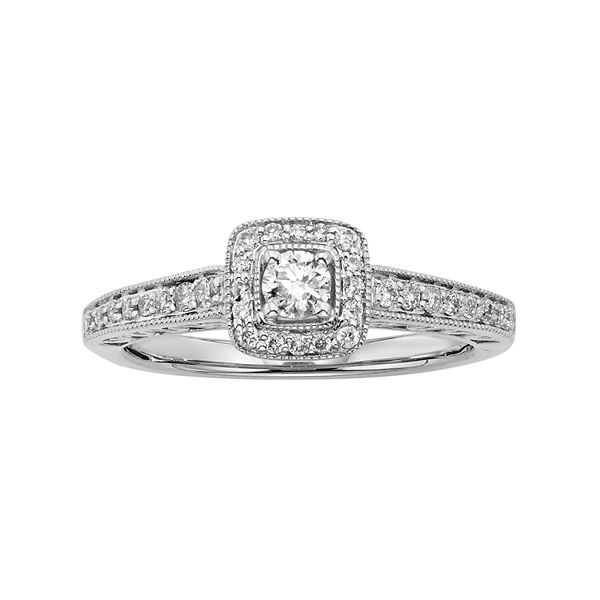 Diamond Square Halo Engagement Ring in 10k White Gold 3 8 ct. T.W Very well made.