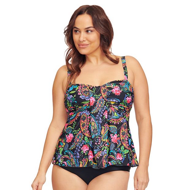 Plus Size Mazu Swim Waist Minimizer Draped Bandeau Tankini Top Very well made.