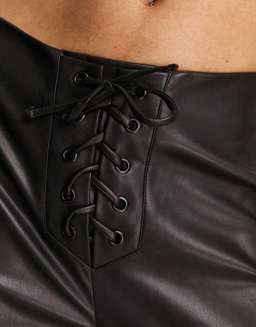 Lace Up Front Detail Straight Leg Trousers In Brown Cracked Faux Very well made.