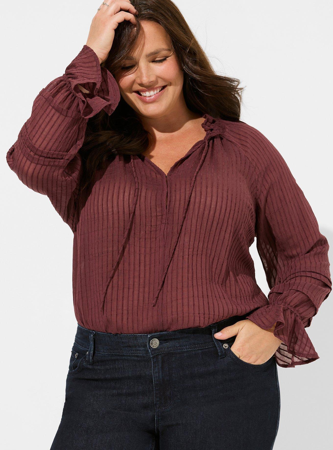Plus Size Stripe Gauze Lace Up Peasant Top Torrid Very well made.